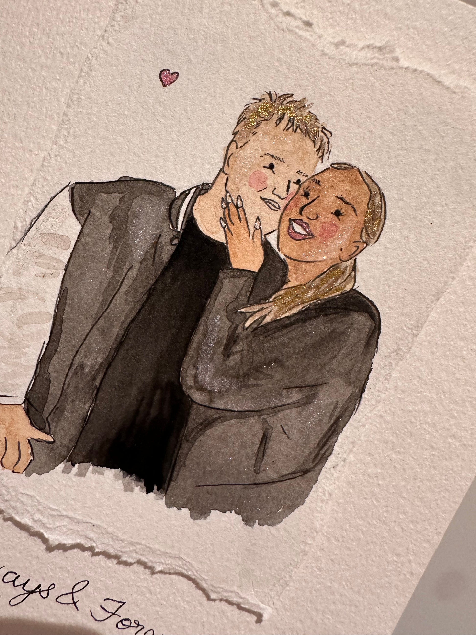 I use a range of high-quality art mediums, from watercolours and inks to subtle touches of glitter—each detail lovingly hand-painted. Your illustration will be created on premium, heavyweight watercolour paper, ensuring a beautiful and lasting finish.